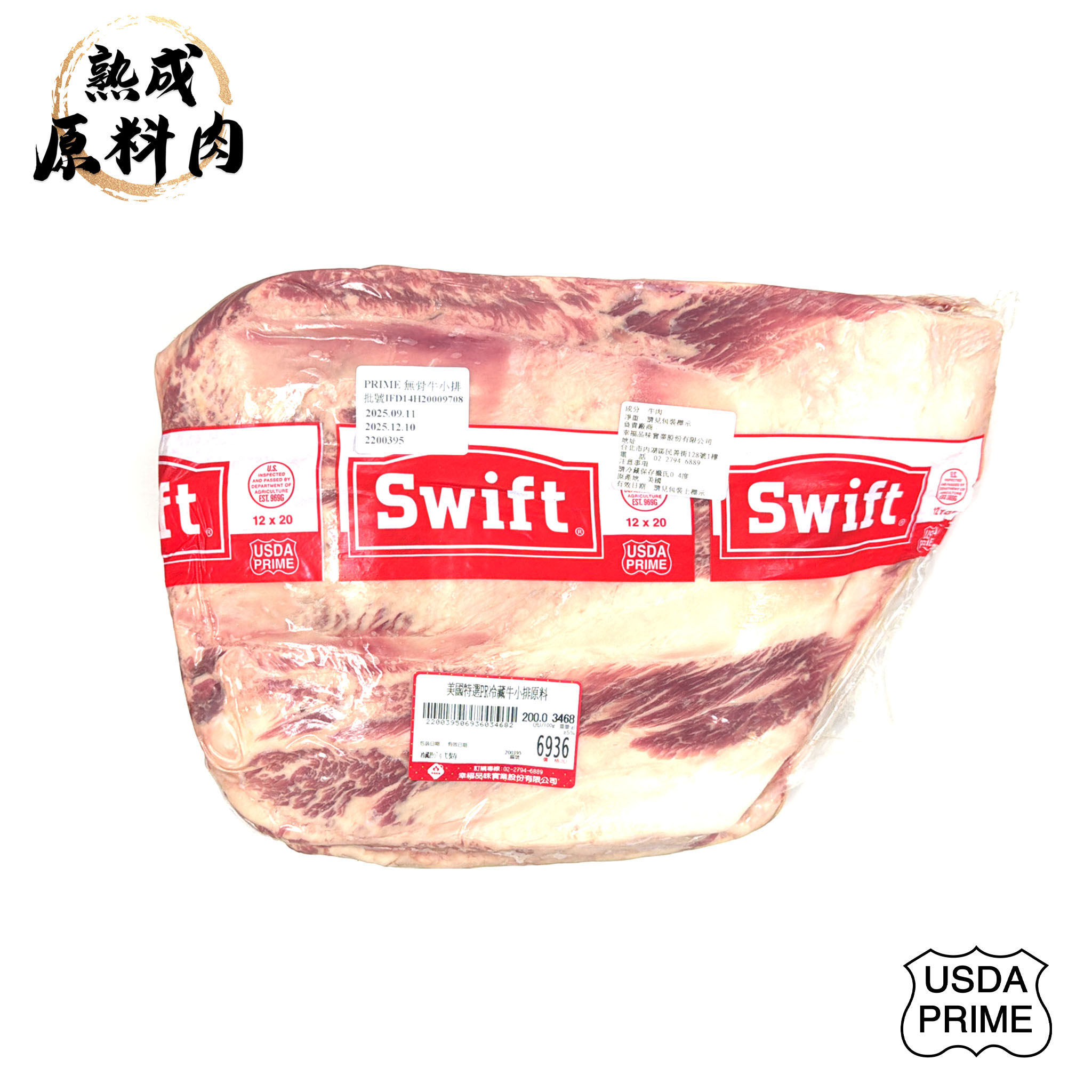 【頂級熟成原料肉】美國特選Prime冷藏無骨牛小排原料/3468g