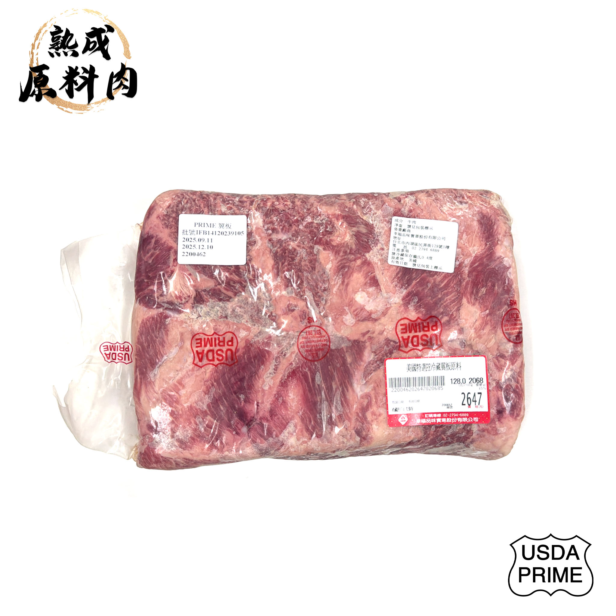 【頂級熟成原料肉】美國特選Prime冷藏翼板原料/2068g
