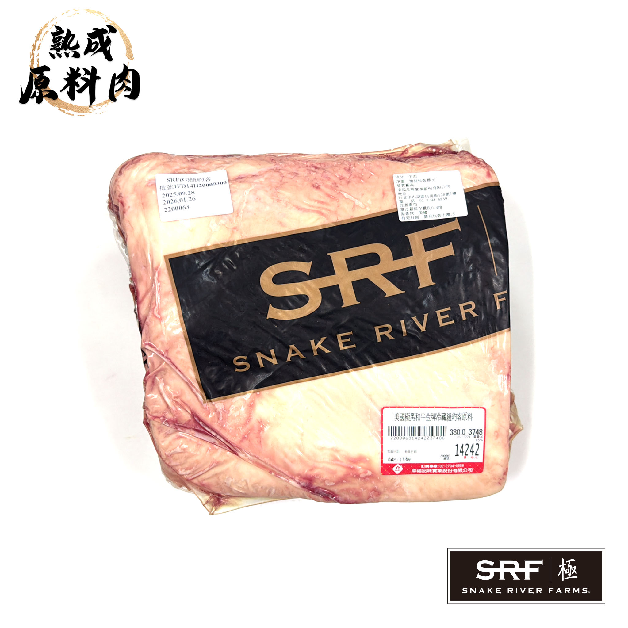 【頂級熟成原料肉】美國極黑和牛SRF金牌紐約客原料/3748g
