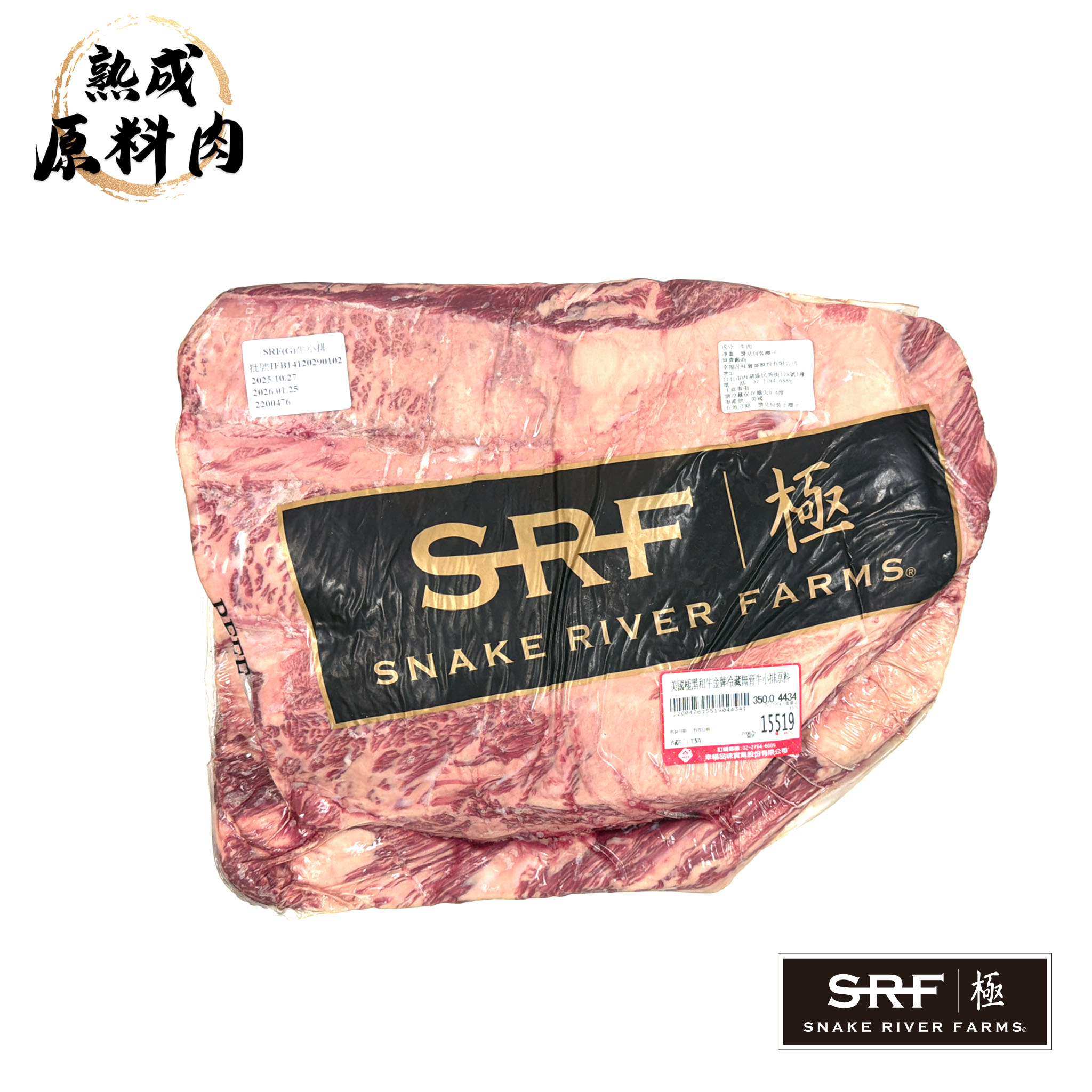 【頂級熟成原料肉】美國極黑和牛SRF金牌冷藏牛小排原料/4434g