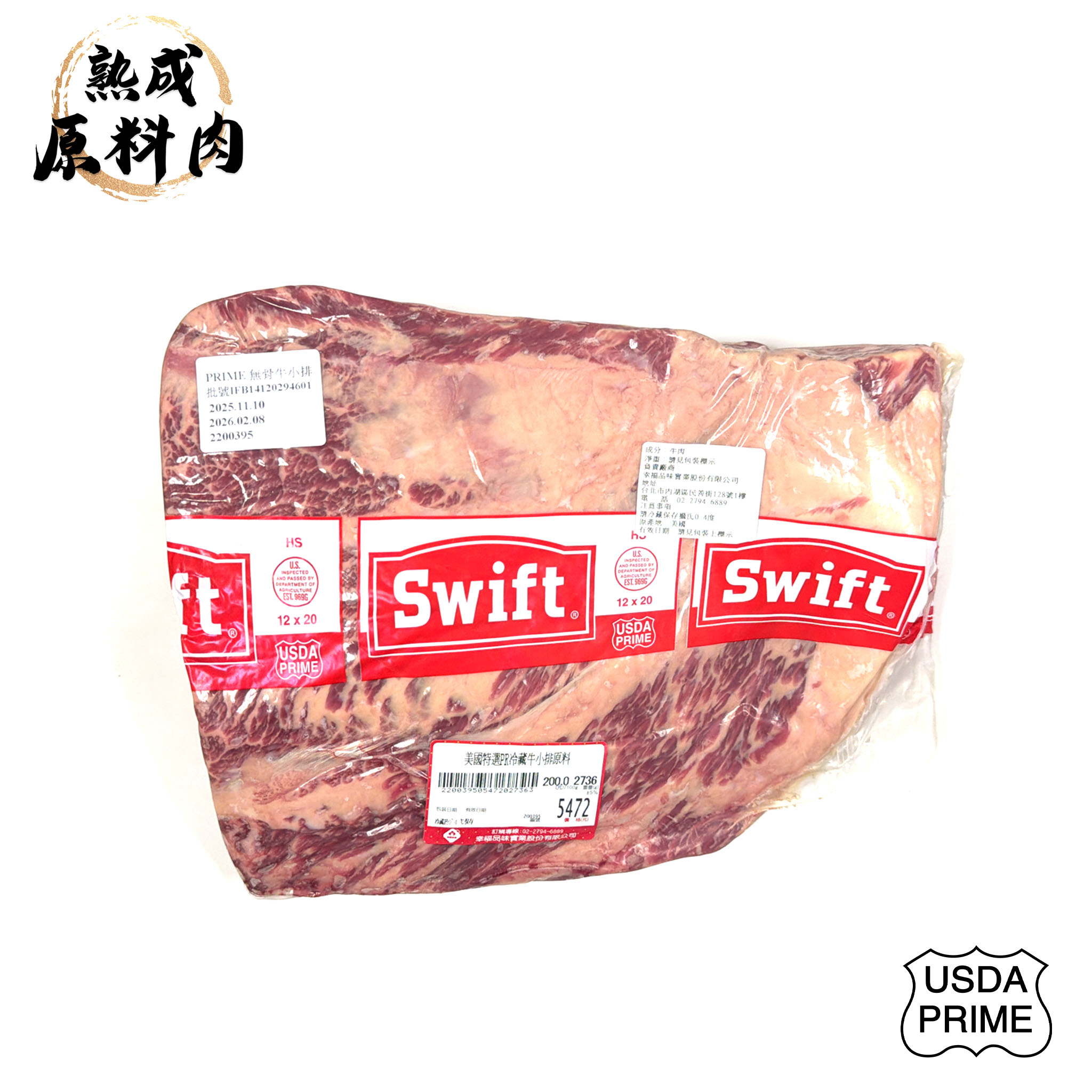 【頂級熟成原料肉】美國特選Prime冷藏無骨牛小排原料/2736g