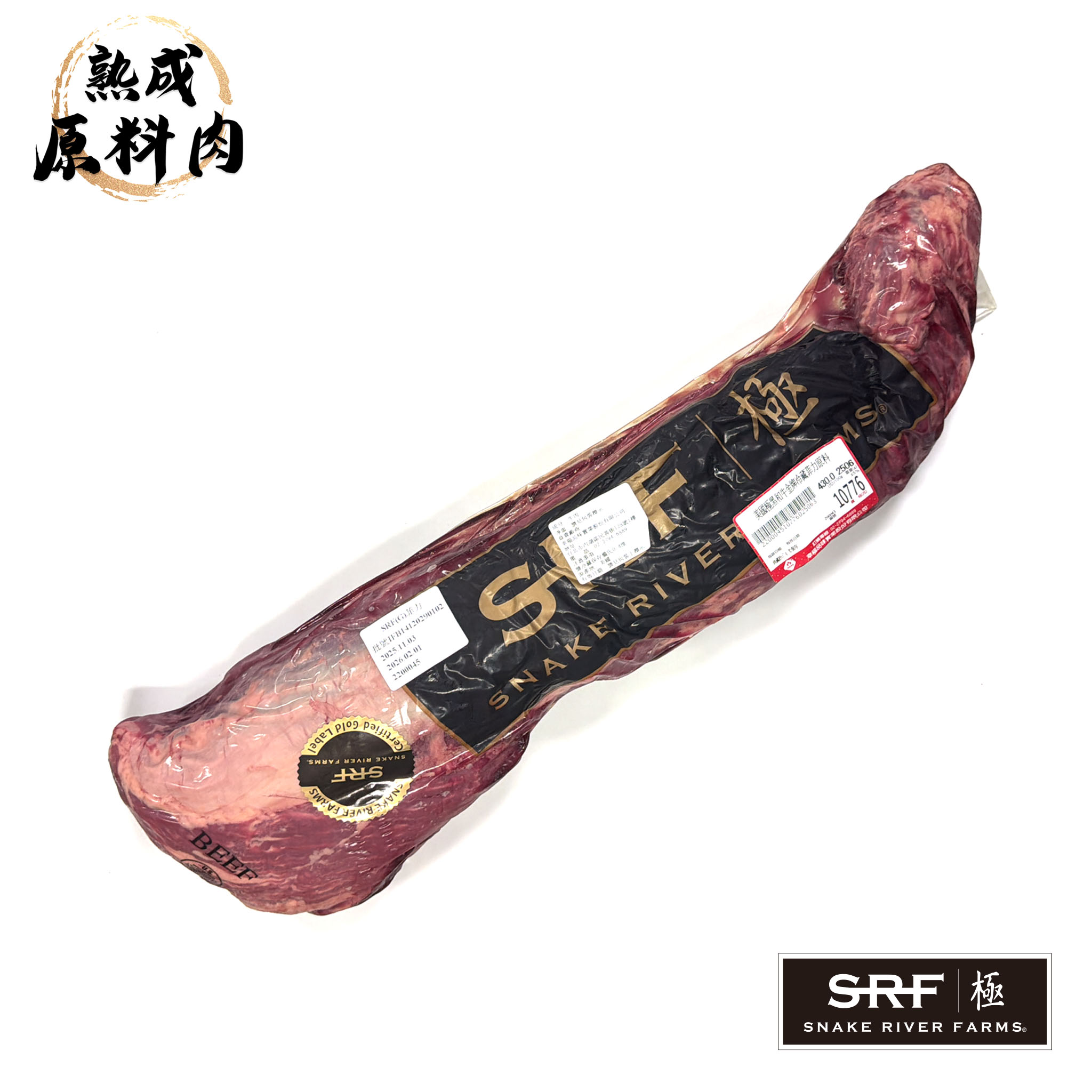 【頂級熟成原料肉】美國極黑和牛SRF金牌冷藏菲力原料/2506g