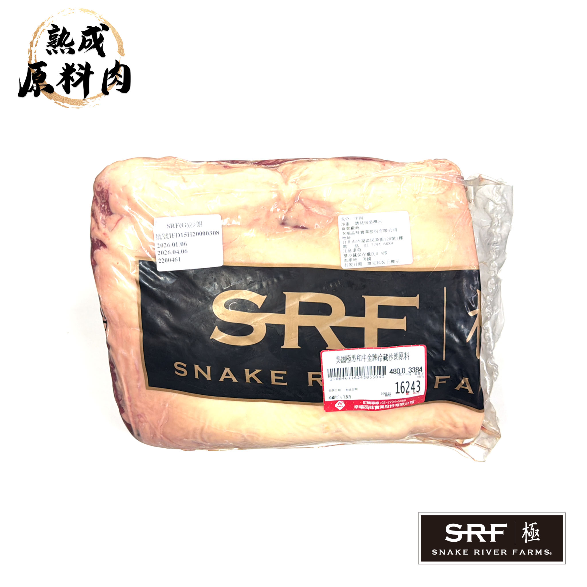 【頂級熟成原料肉】美國極黑和牛SRF金牌沙朗原料/3384g