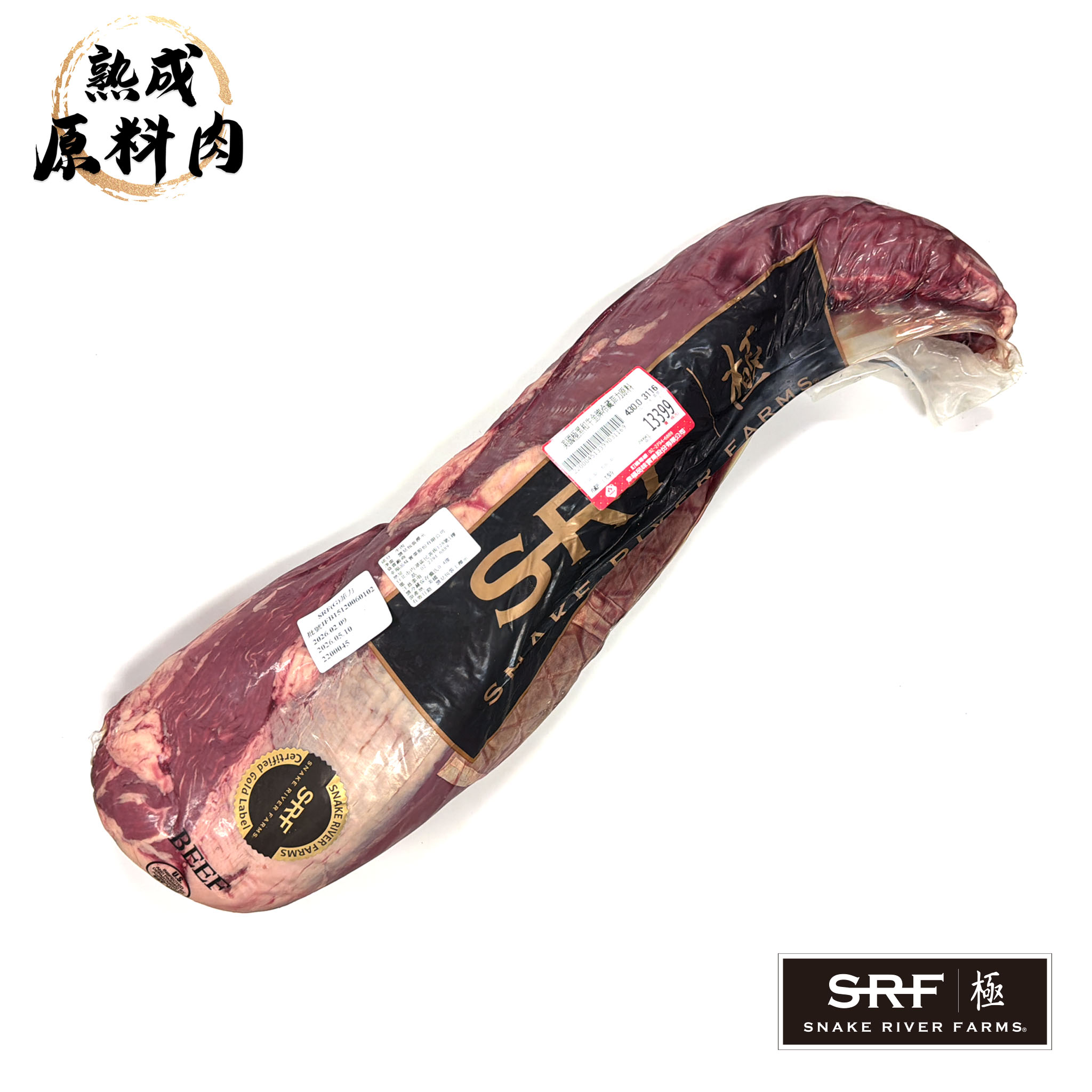 【頂級熟成原料肉】美國極黑和牛SRF金牌冷藏菲力原料/3116g