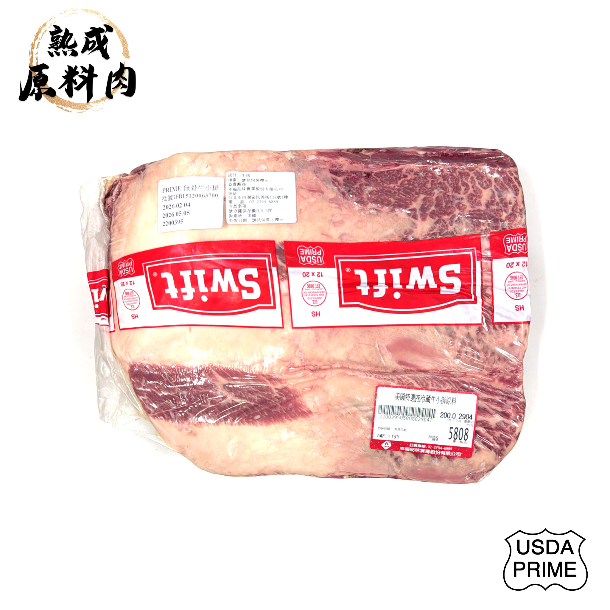 【頂級熟成原料肉】美國特選Prime冷藏無骨牛小排原料/2904g