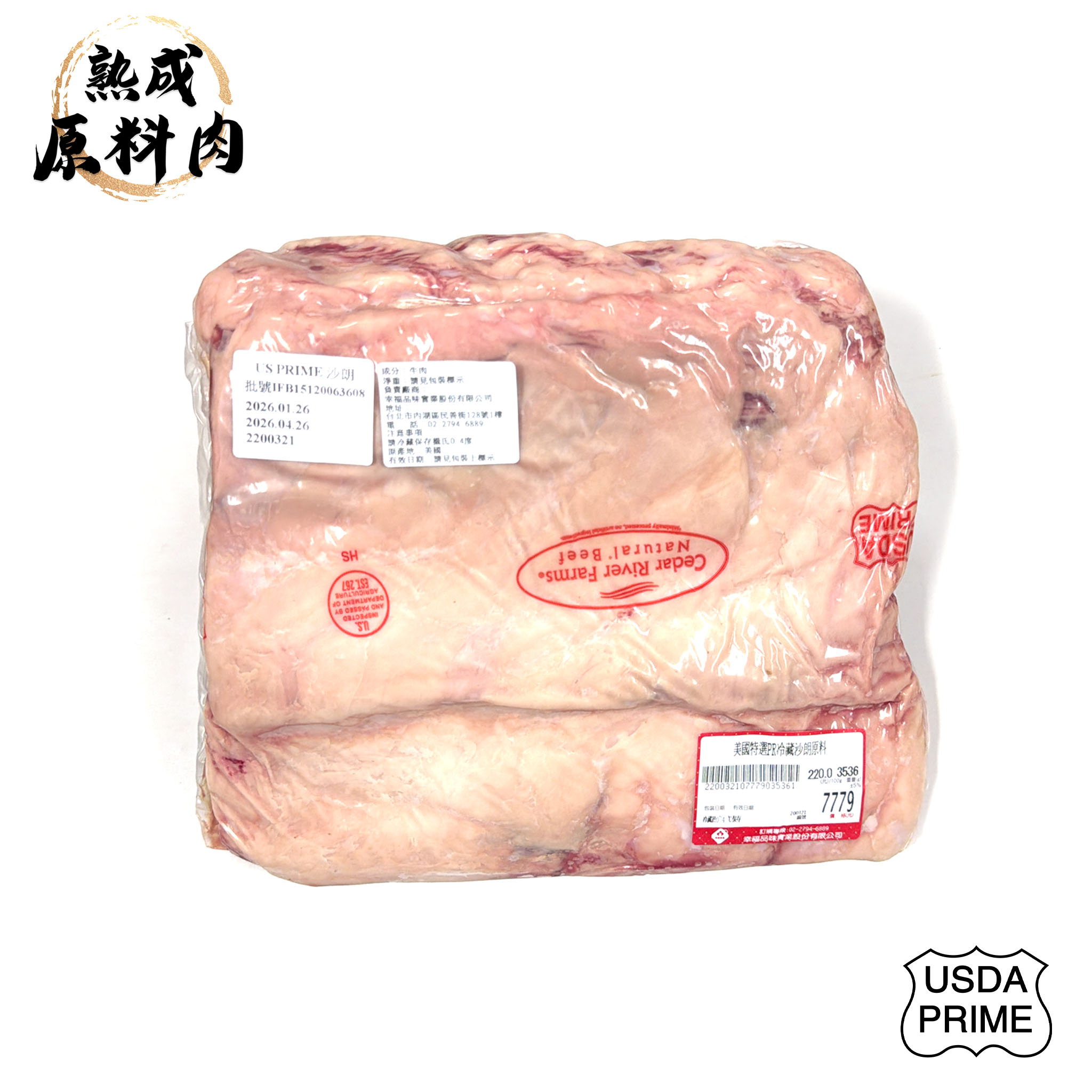 【頂級熟成原料肉】美國特選Prime冷藏沙朗原料/3536g