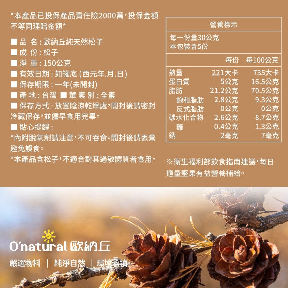 【歐納丘】純天然松子