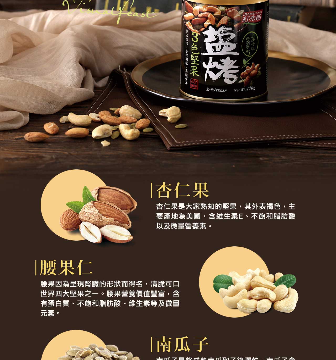 【紅布朗】鹽烤3色堅果