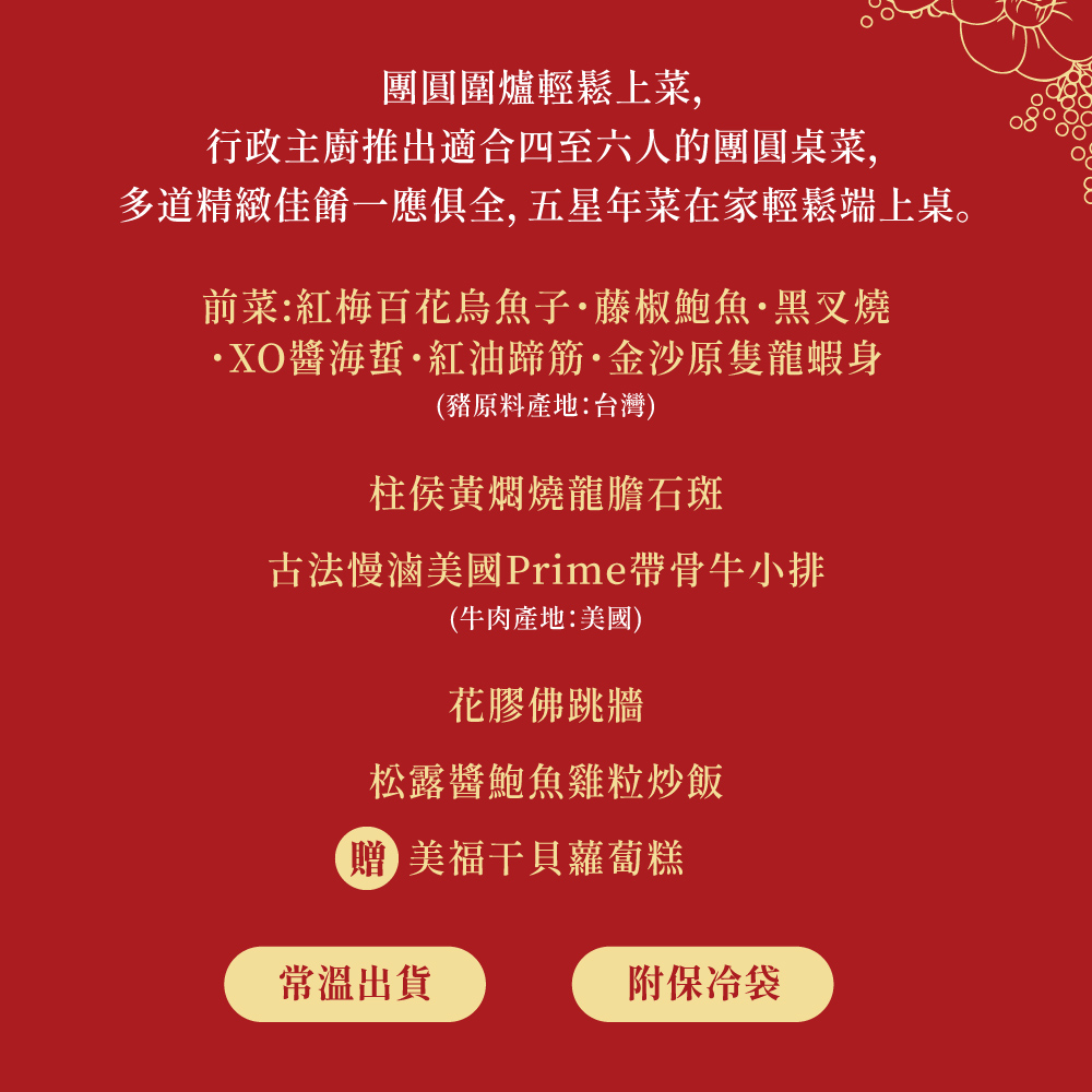 【預購自取年菜/美福大飯店】駿馬福運圍爐宴(5道菜)