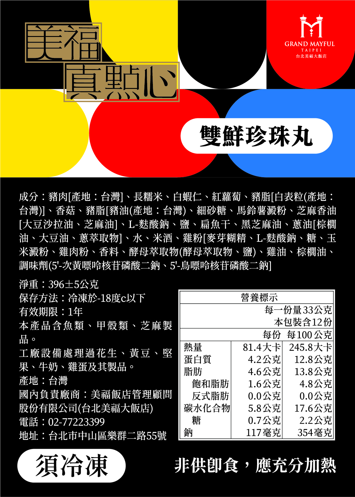 ※本產品含有麩質穀物、甲殼類、酒、芝麻製品,工廠設備處理過花生、黃豆、堅果、牛奶、雞蛋及其製品,不適合其過敏體質者食用。