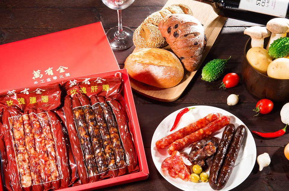 高人氣「萬有全玫瑰肝腸」,完整保留家鄉味,嚴選上等食材加上高粱酒和玫瑰露,低溫洪培鹹香濃郁,香嫩多汁有嚼勁!加熱後即可食用,也可切成成拼盤或是製成臘腸飯等,鹹中帶甜又有點點酒香,一口接一口的好滋味!
